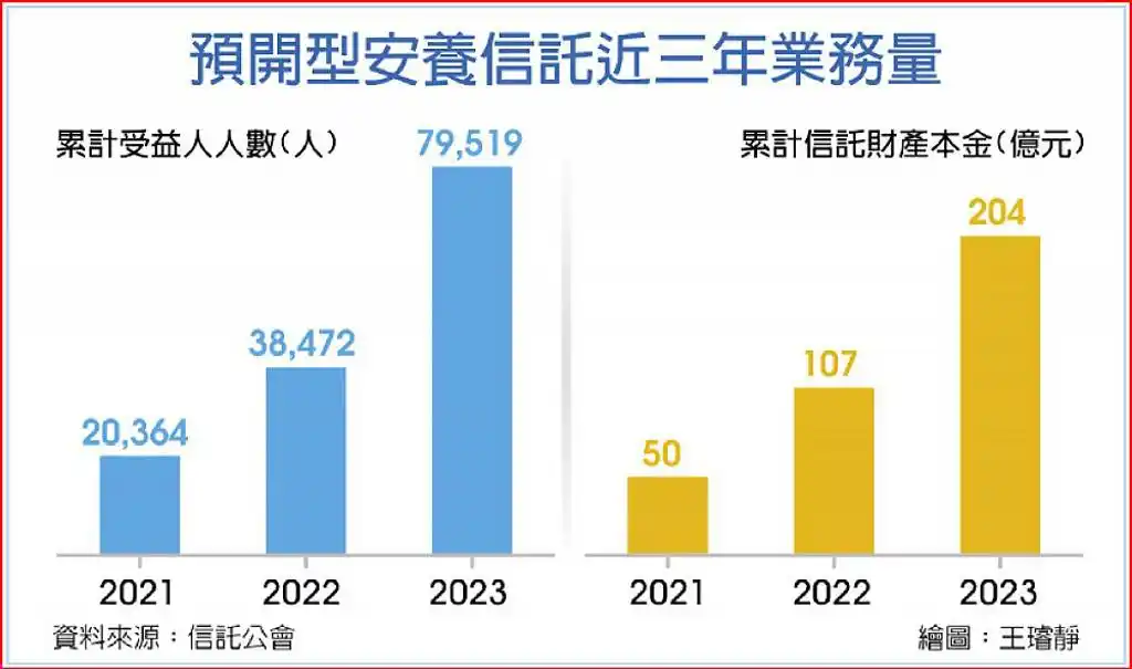 另外,「預開型安養信託」近年成為國人提前規劃老年生活的重要選項,該類型信託強調「提早設定、未來啟動」的概念。根據統計,截至今年第一季底,全台預開型信託人數已突破10萬人。