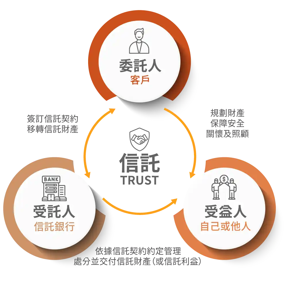 信託,在國外已行之有年,是許多家庭用來守護人生的重要方式。但在台灣,它卻常被貼上「富人專屬」、「節稅工具」的標籤,讓平凡百姓產生距離感,甚至望之卻步。其實,信託並不遙遠,它是最具有溫度的金融商品:當我們無法親自照顧摯愛的人時,代替我們守住最後的心願。 簡單來說,信託就是「找值得信賴的人,幫我們照顧財產」,因此衍生出的信託架構,主要有三項角色,就是「拿出信託資產的人」(委託人)、「管理信託資產的人」(受託人)及「受領信託資產利益的人」(受益人)。