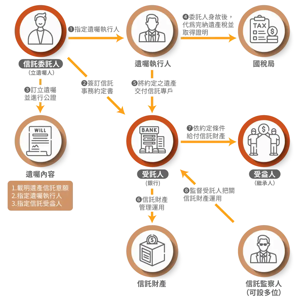 遺囑信託是一種「等到人去世後才生效」的信託安排,簡單說,客戶可以指定財產給誰、怎麼分、由誰管理。遺囑信託費用相對較高、程序繁瑣,然而,高資產客戶重視的不是費用高低,而是「分配」是否妥當,信託的「客製化」因此相當重要。