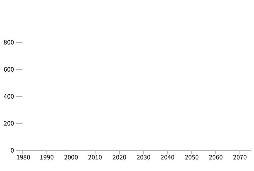 註:2020年起為中推估值,()中數字表示65+佔總人口之比率